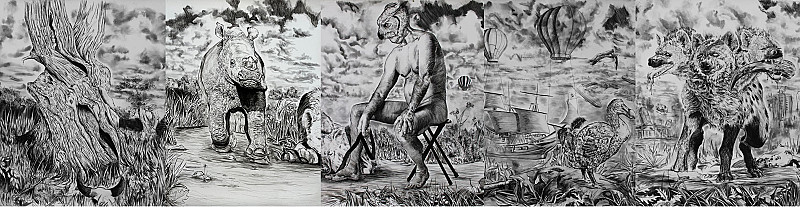 When narrating my stories, I use the forsaken storytelling that we got from our ancestors. My work is inspired by how these stories were portrayed to us through verbal storytelling, I take an allegorical approach in my work to comment on social issues. To communicate my ideas in a way that would be understood by everyone, I looked to The Lion King for inspiration for this artwork. I then use a similar approach by using animals in to narrate my story. I look at living in the era of the Anthropocene, how capitalism has led us humans to benefit from nature but nature not benefiting from us in return.